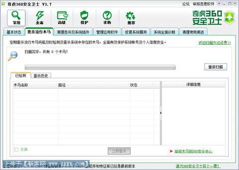 首先我们重新启动重新上岗就业的杀毒软件。这里我使用360安全卫士,因为针对非感染exe类型的病毒,360足够应付了,而且速度快很多。