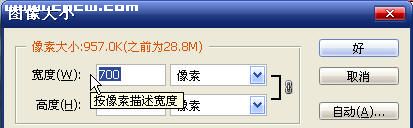 4.调整图片大小,鼠标右键点击图片图片标题栏,选择“图像大小”命令,弹出“图像大小”设置面板,本例中我们将图片宽度设为700像素,图片高度电脑会按比例自动缩小。 |
