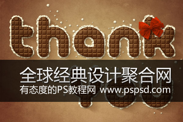 文字的制作大致分为两部分。首先是巧克力字部分,制作之前需要自己画出巧克力的方块图形,并定义为图案。然后用图层样式来控制浮雕效果。然后是底部的奶油效果,用设置好的笔刷描边路径做出底色,再用图层样式做出浮雕效果即可。