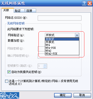 查看系统是否支持该加密方式:“无线网络属性”中选择“关联”,在“网络验证”中查看一下您的系统是否支持路由器中设定的加密方式。
