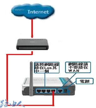 一、把从前端友讯路由器接过来的网线接在DI-624+A  LAN端口其中一个端口,而不要接在WAN端口