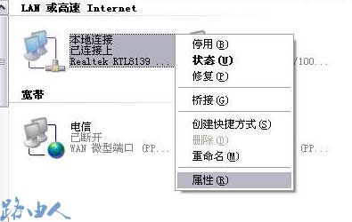 (1)设置电脑的IP地址,键点击网上邻居—属性
