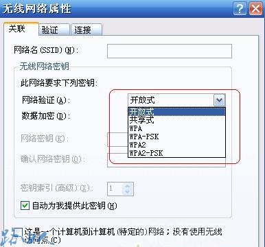 如果上面红框中没有无线路由器中设置的网络验证方法,请将无线路由器中的加密方法改为无线网卡支持的加密方式或下载操作系统补丁以支持前端无线路由器的加密方式。