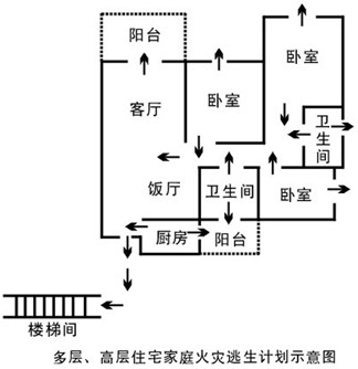 记得一定要把家里所有的房门、窗户、楼梯都标注在图上,这样能够让您和您的家人对紧急情况下家里的逃生路线一目了然。同时,请别忘记标注房屋附近的疏散楼梯,因为城市居民大多住在多层和高层住宅里面!