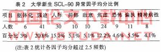 通过对新生SCL一90因子均分超过2.5的频数分析发现:强迫、人际敏感、焦虑等因子是影响大学新生心理健康状况的主要因素。