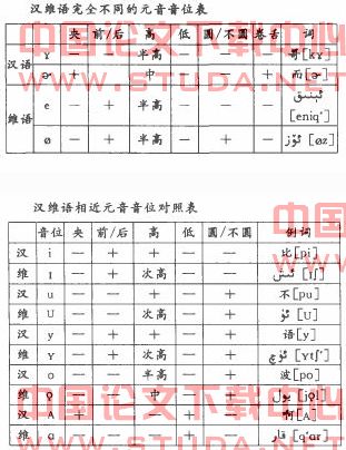 1.汉维语元音音位对比