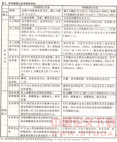 通过以上对中外旅游小企业发展特征的对比分析,可以得出:就整体而言,中国的旅游小企业在从业人员结构,经营方式等方面都表现出与国外旅游小企业相同的特征;只是由于目的地社会经济发展水平的差异,文化背景的差异以及游客类型的差异,中外旅游小企业在诸如企业的类型构成,经营方式,经营理念等方面有所不同。