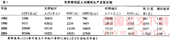 改革开放以来,中国经济体制改革和对外开放的“梯度开发”战略使东部沿海地区经济获得了迅速的发展。但与此同时也使中西部地区与东部沿海地区经济上的差距逐步扩大(见表1)。