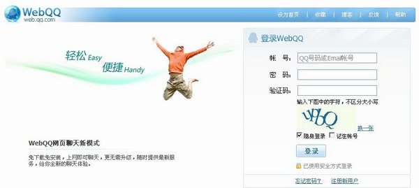 答:建议您使用网页版QQ——WebQQ,WebQQ无需下载安装客户端,与QQ一样可以聊天传文件。登录WebQQ地址:http://web.qq.com